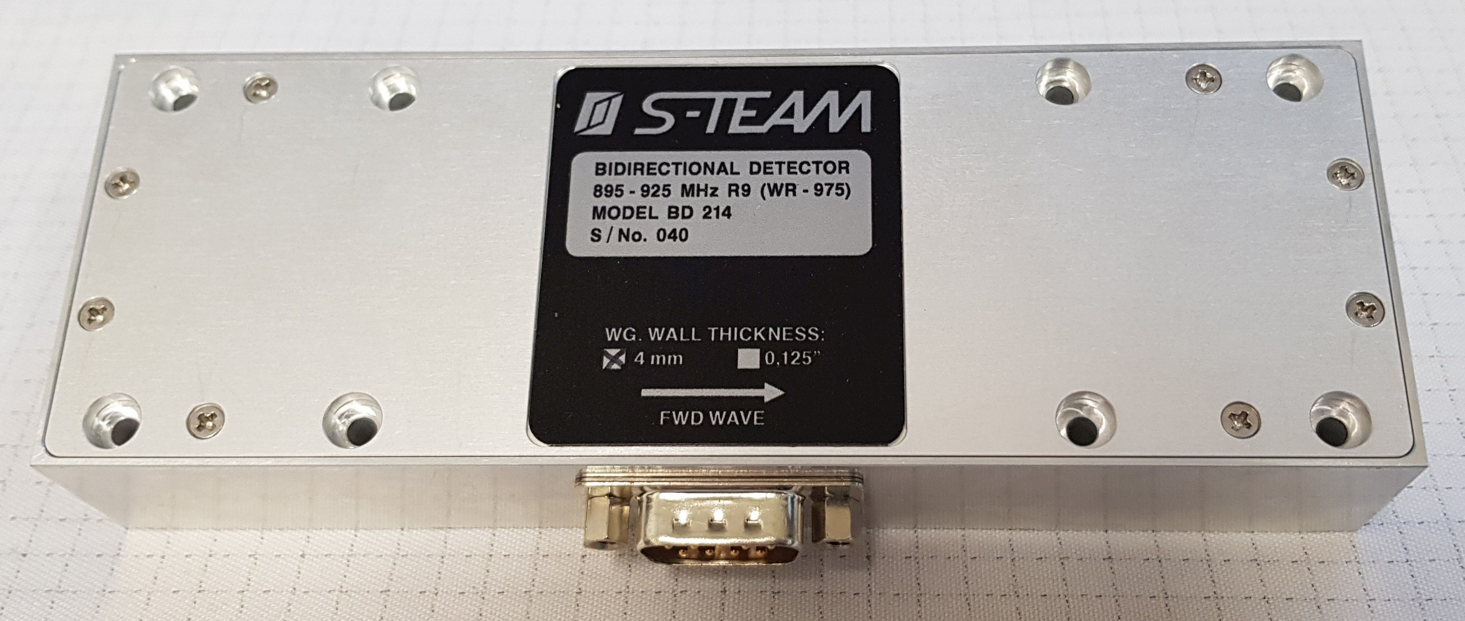 BD214 is a bidirectional detector intended for simultaneous sampling of incident and reflected waves in high-power 900 MHz industrial applications using an WR975 (R9) rectangular waveguide. The bidirectional detector combines the following components: