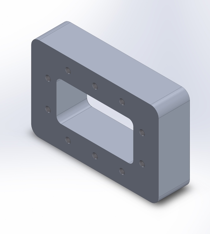 WTS141 is a step transition with the shortest possible length between WR340 (R26) and WR430 (R22) waveguides, intended for applications where space restrictions are critical. Both waveguide faces are fitted with M6 threaded holes.